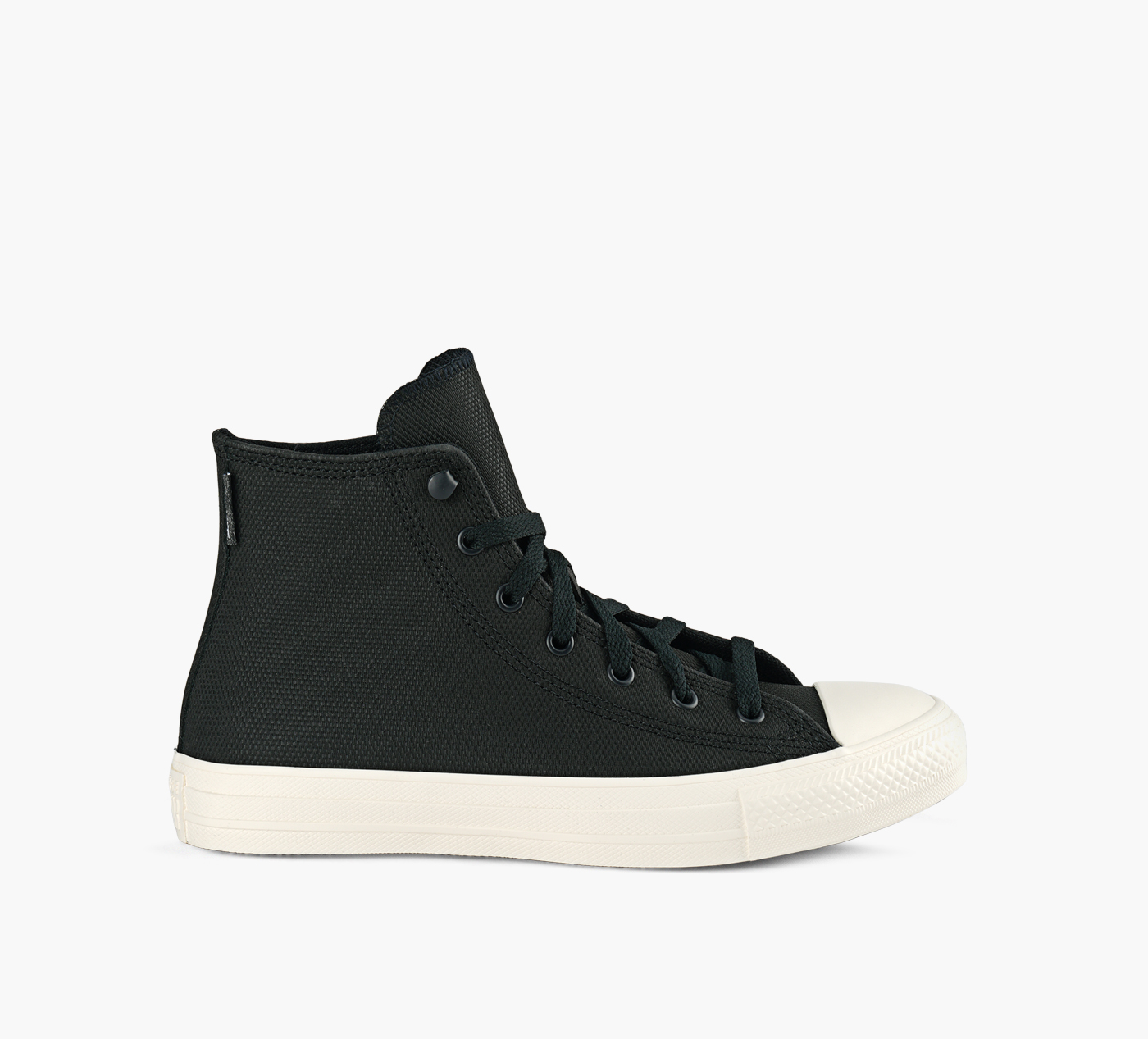 A monochrome take on the Chuck high-top heavyweight sneakers featuring a signature logo patch at the inner ankle, coated rubber midsole with stripe detailing and rubberized logo at the midsole heel. Supported by an OrthoLite® insole for all-day comfort. Lace-up closure with round rubber cap toe.