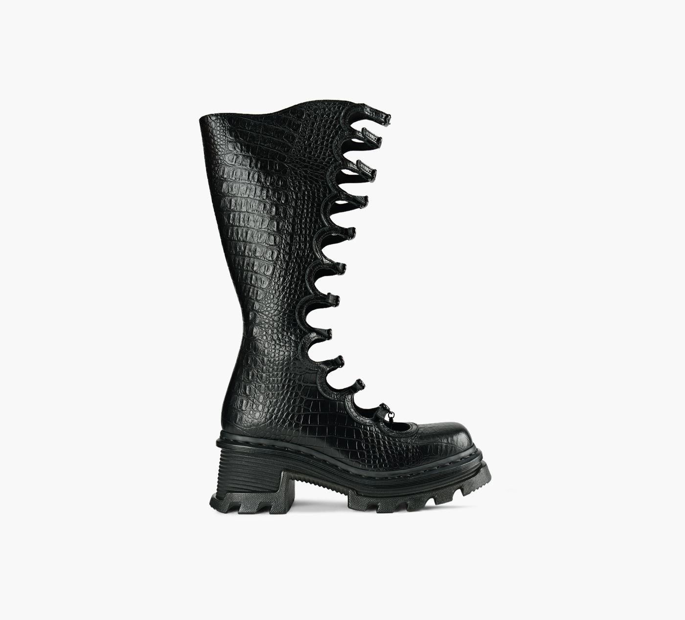 - Knee-high silhouette