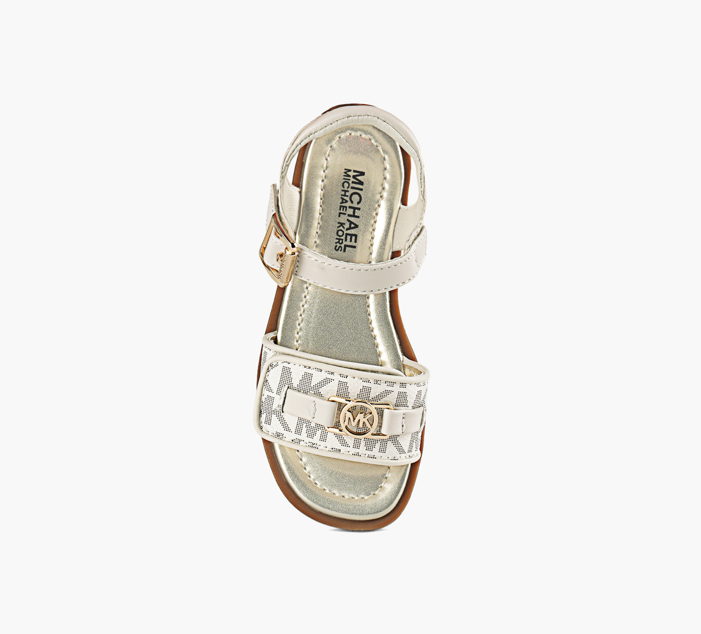 Ultra-wearable chic is also child’s play with Kieran, a deluxe Y-strap sandal with for when on-the-go merits a bit of flash. These kids also get on easy with a combination of ankle strap and buckle and a Velcro toe-strap for convenience. All in the MK luxe.