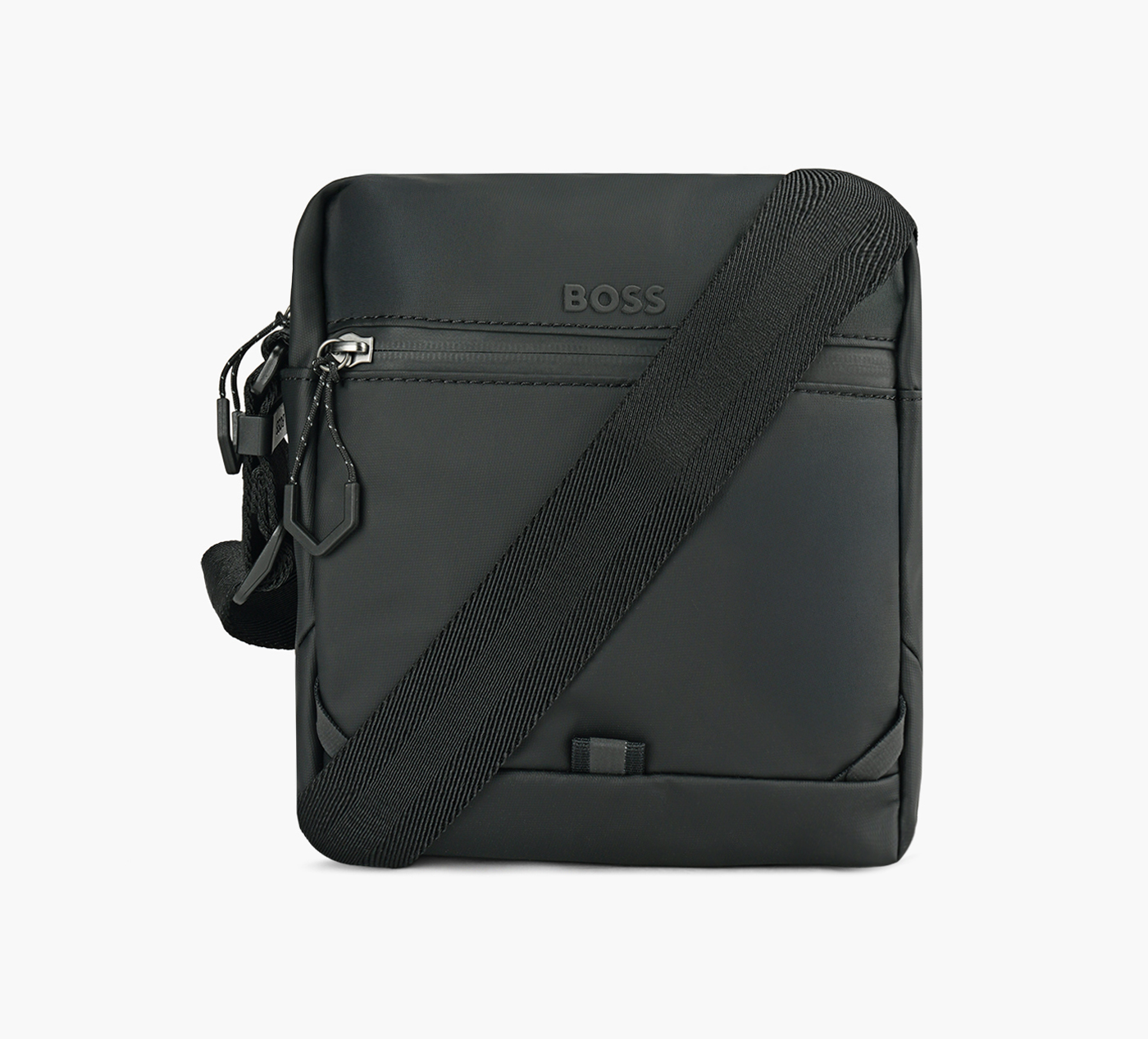 The BOSS Stenson NS Zip is a sleek, compact crossbody designed for hands‑free ease. Crafted from durable coated synthetic fabric with polished gunmetal hardware, it features reflective detailing and a secure top‑zip closure. Sized to keep essentials close without bulk, it delivers modern practicality with a clean, understated BOSS finish.