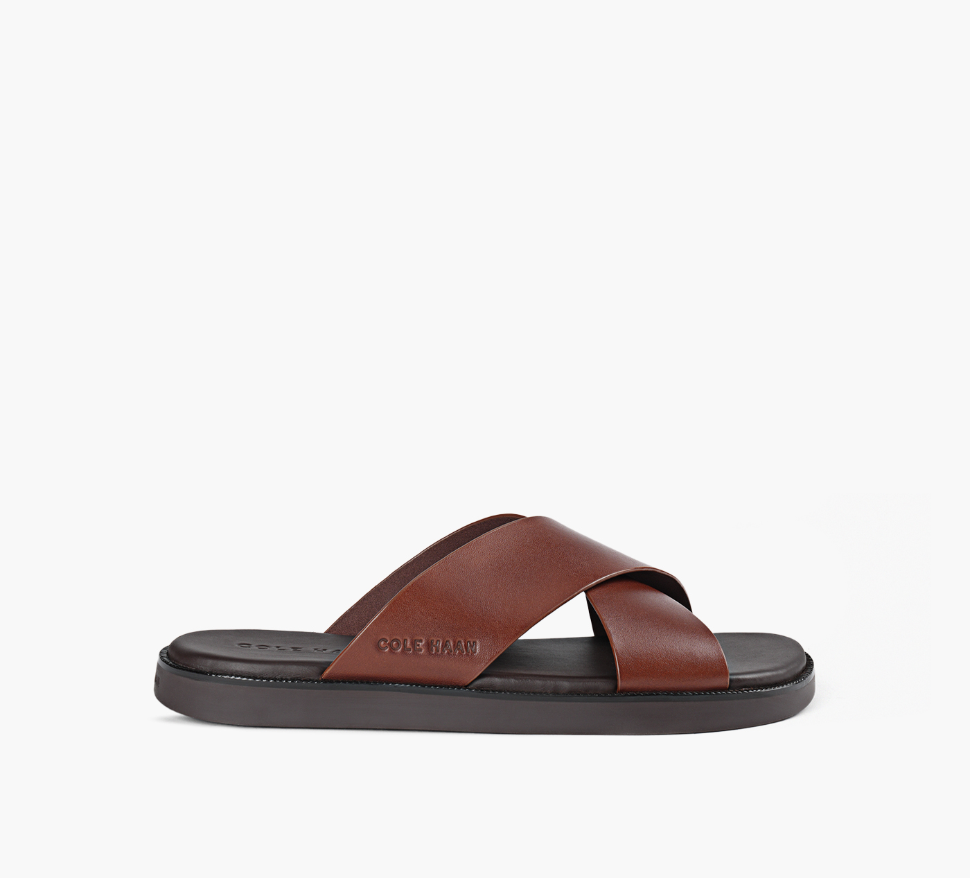 An effortless slide, made incredibly polished: the Nantucket Cross Strap Sandal, a slip-on made of materials that mold to your foot the more you wear it. With a cushioned footbed and lightweight rubber outsole.