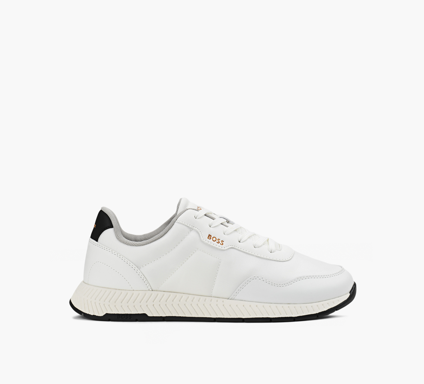 BOSS' Titanium Runn NYPUN sneakers showcase the label's keen eye for streamlined design. Adding to the brand's already covetable Titanium line, this style is cut to a sleek, minimalist profile that cleanly laces up for a secure and supportive fit. Of course, a hint of logomania is always welcome, and you'll find it at this pair's sides, rendered in gold-tone foil for all to see.