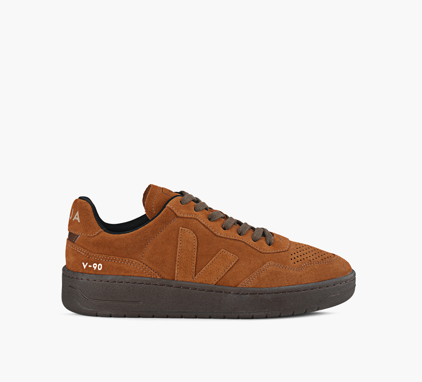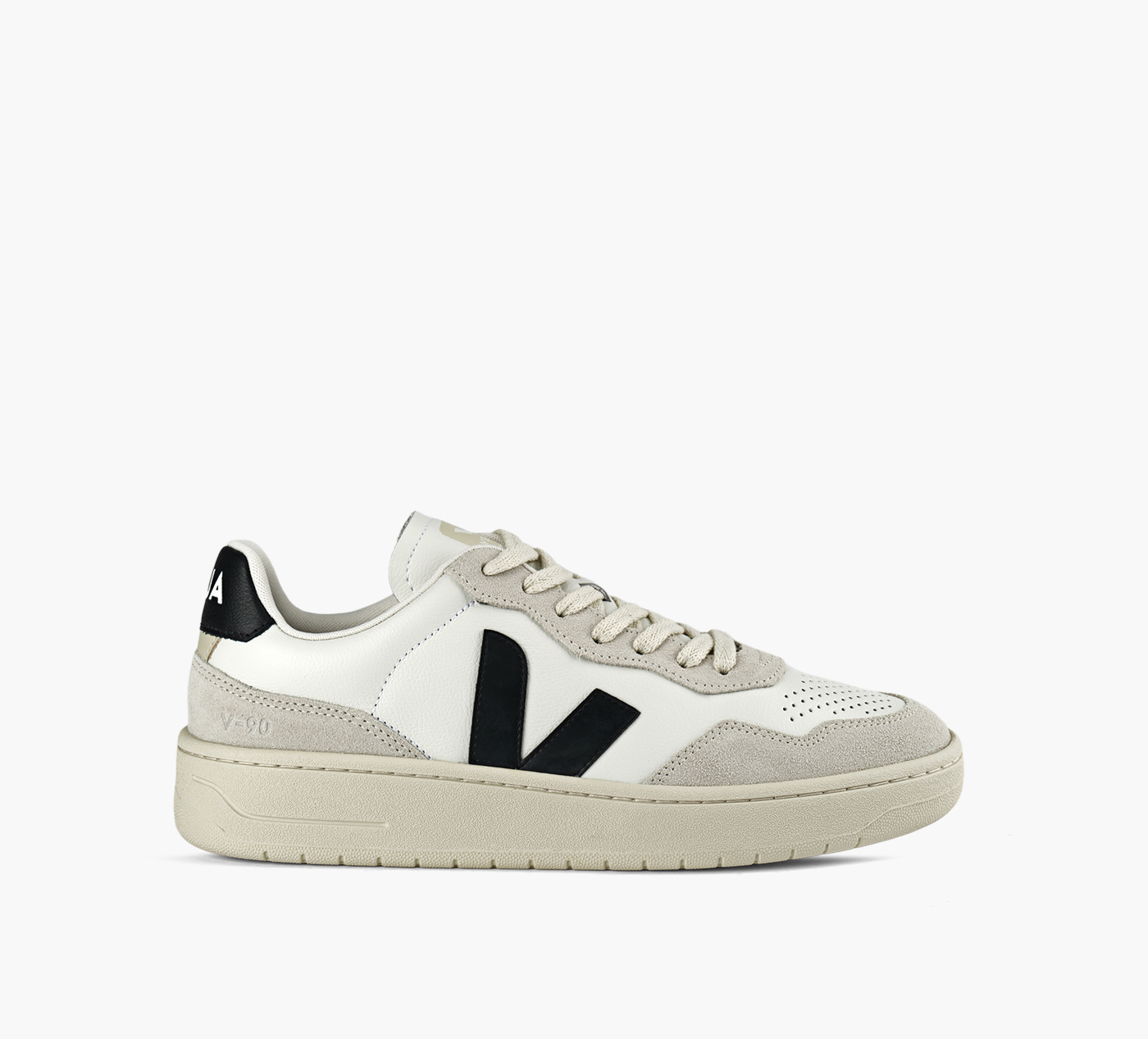 The Veja V-90 sneakers blend retro charm with contemporary sustainability. Crafted from eco-friendly materials, including organic cotton and recycled polyester, these shoes are designed for comfort and style. The classic silhouette features the recognizable V logo, adding a fashionable flair. With a cushioned insole for support and a durable rubber outsole for traction, the V-90 is perfect for everyday wear and casual outings.