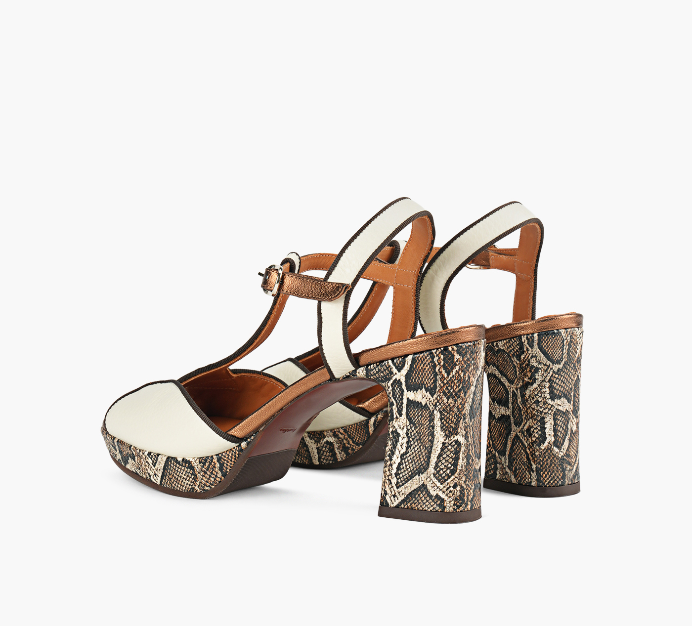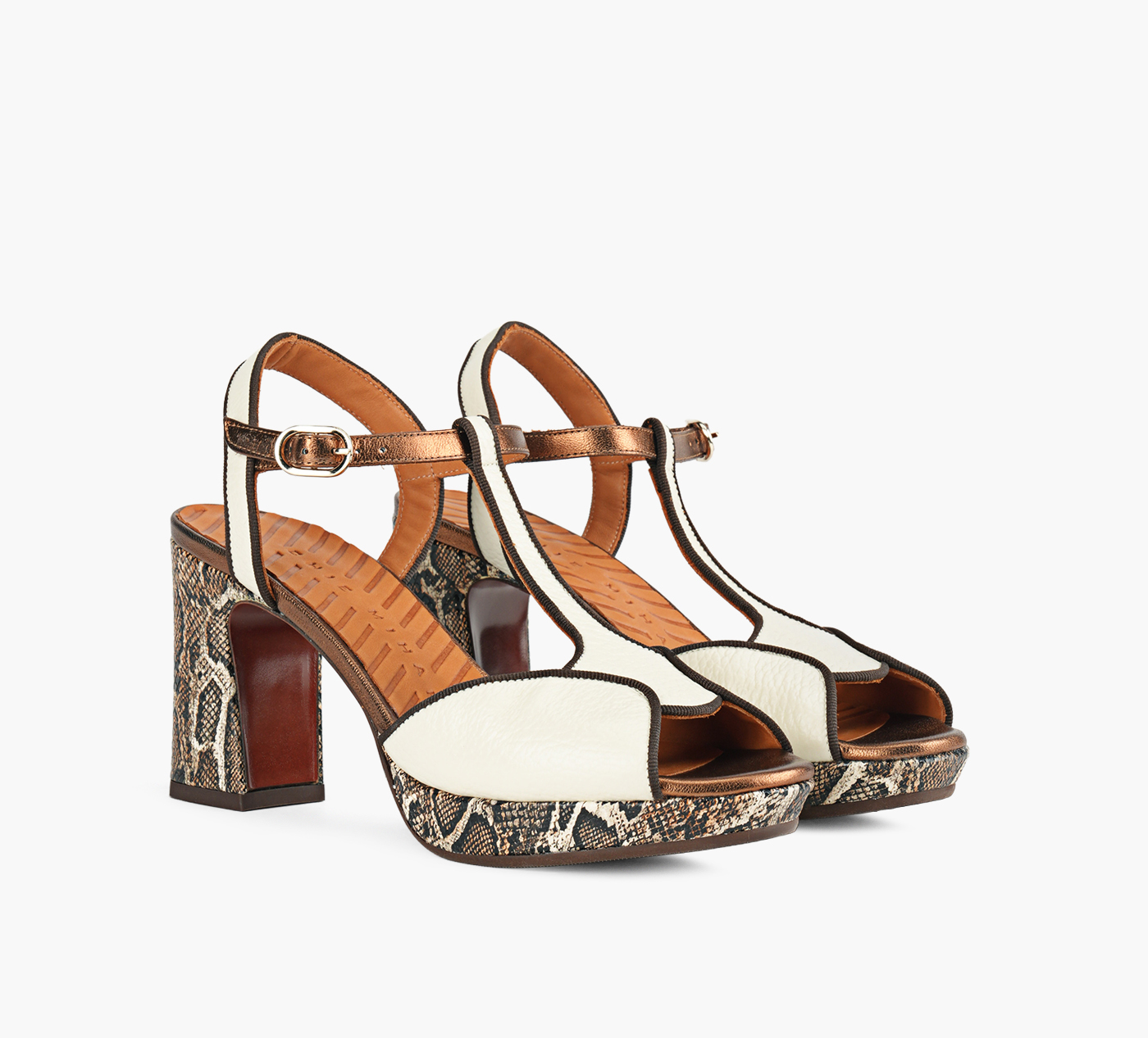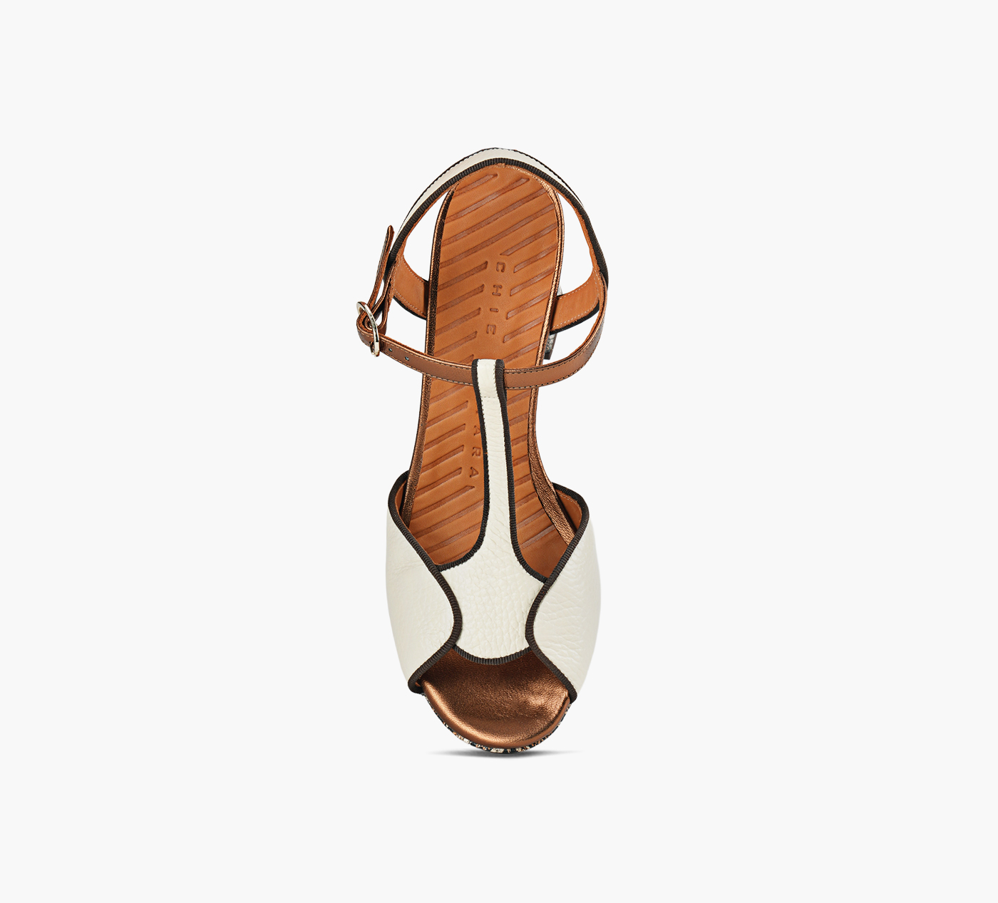 - Geometric leather upper with T‑bar design