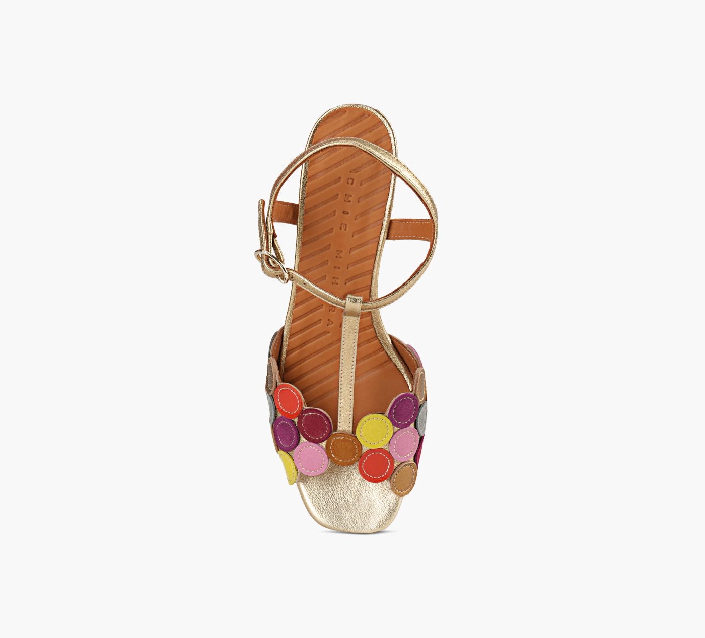 The Chie Mihara Rycuse sandal brings a bold yet balanced statement to warm‑weather dressing. Crafted in ultra‑soft suede with metallic and patent‑effect leather accents, it blends rich tones for eye‑catching contrast. A comfortable mid‑height, stacked heel and soft leather lining provide everyday ease, while the adjustable buckle ensures a secure, flattering fit.