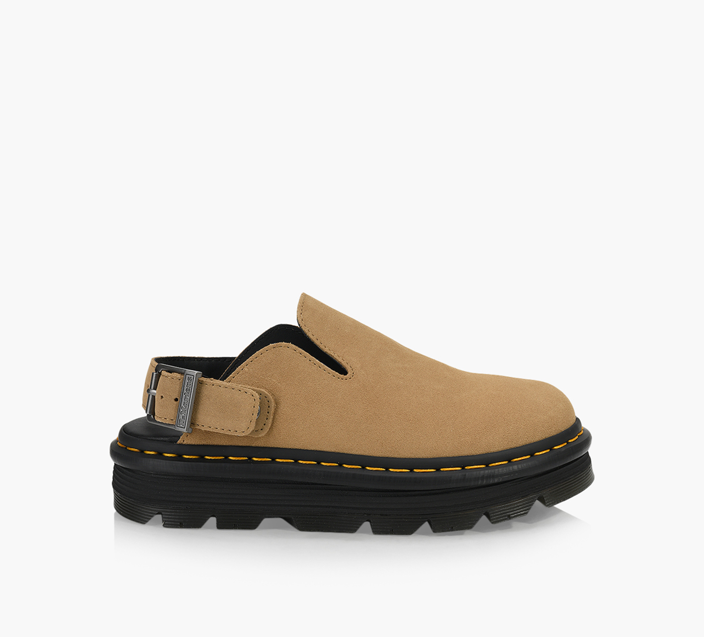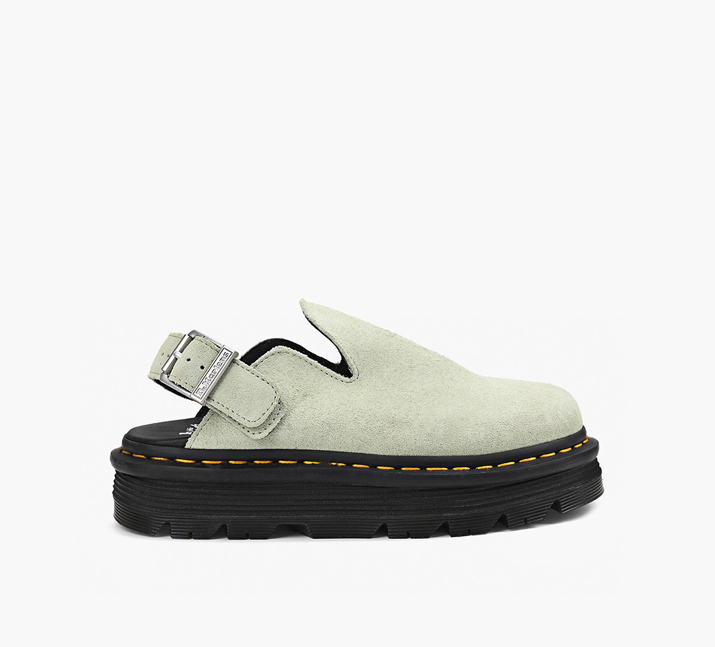 Dr. Martens reimagines the classic mule for SS25 with the ZebZag pair. Crafted from buttery soft suede, this pair is grounded by a refreshed take on the brand's Bouncy AirWair sole, without forgoing the iconic yellow welt stitching. Designed with versatility in mind, this pair can either be worn backless or with the adjustable strap for a secure fit.