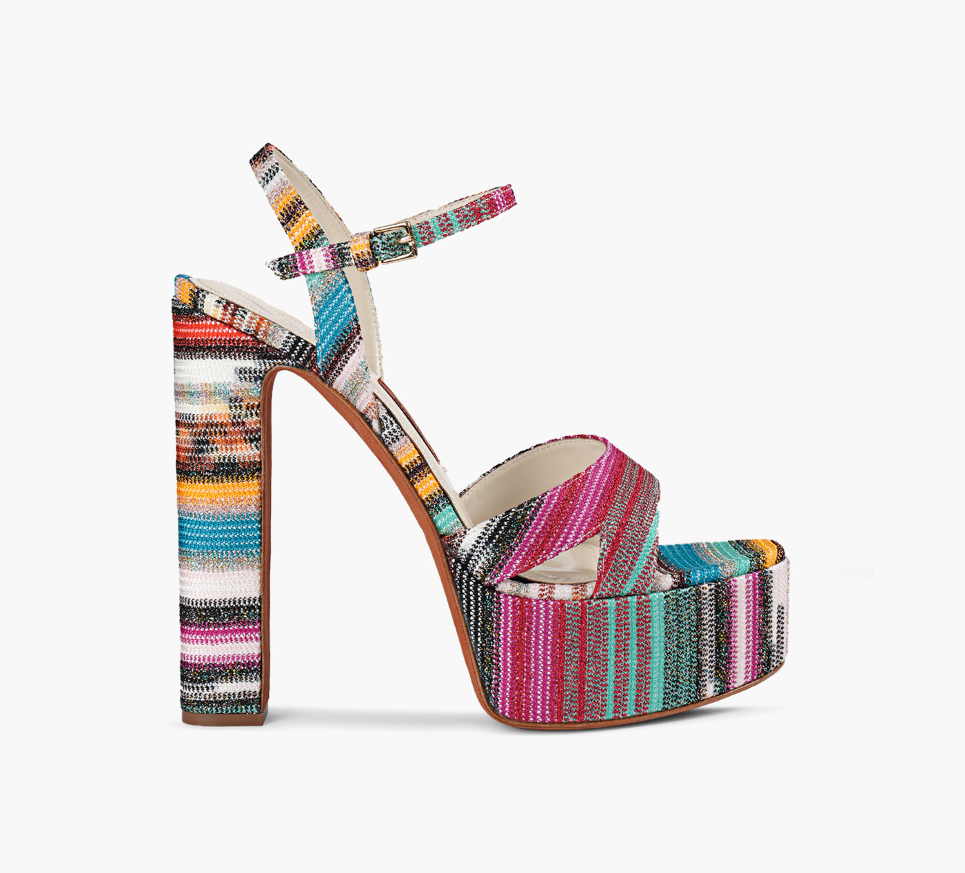 Missoni is a proud family-owned business, passed down from generation to generation. Paying homage to one of the label's creative directors, Angela Missoni, the brand dreams up this pair of sandals by the same name. Borrowing from the sky-high silhouettes of the 1970s, this pair is stacked on a towering platform heel before being swathed in the maison's signature stripes.