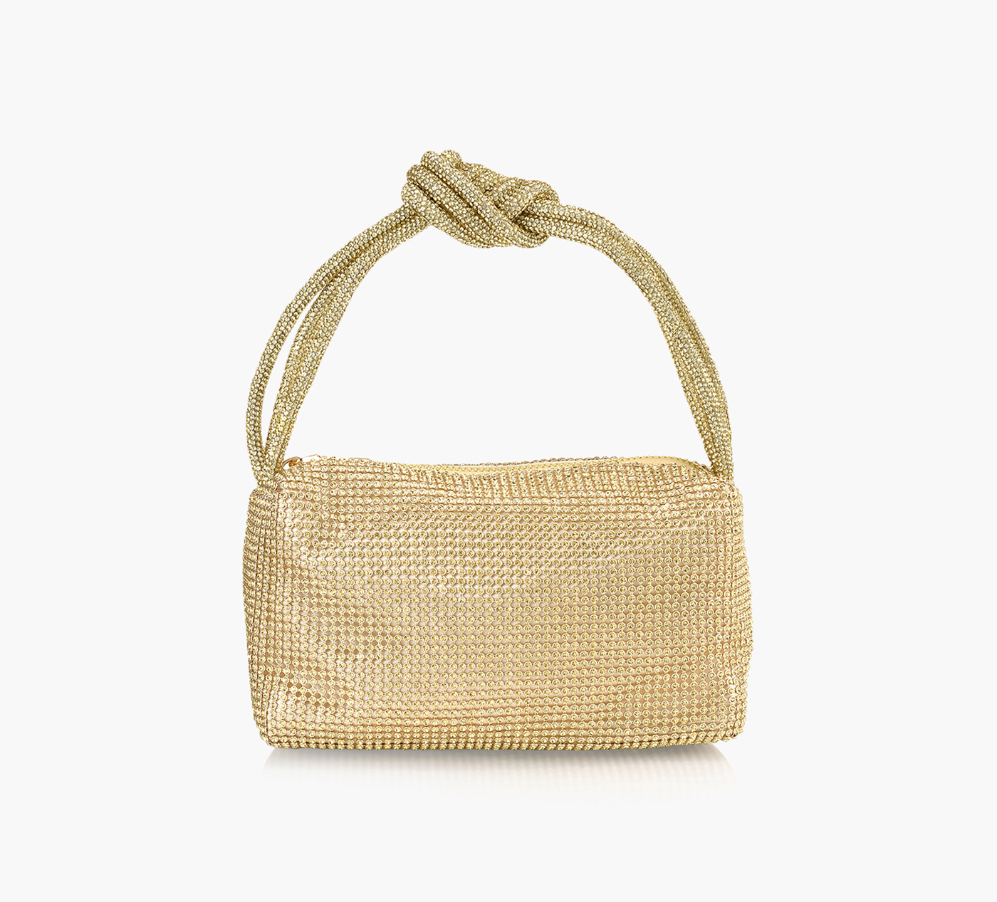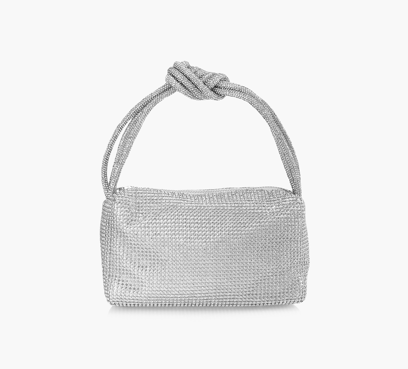 Mimosa's penchant for playful embellishments is no secret: take one look at the label's line-up and see. Joining the brand's ranks is none other than the Aurai bag. Cut to a slouchy box silhouette, this style features a knotted top strap before being awash with a sea of glittering crystals.