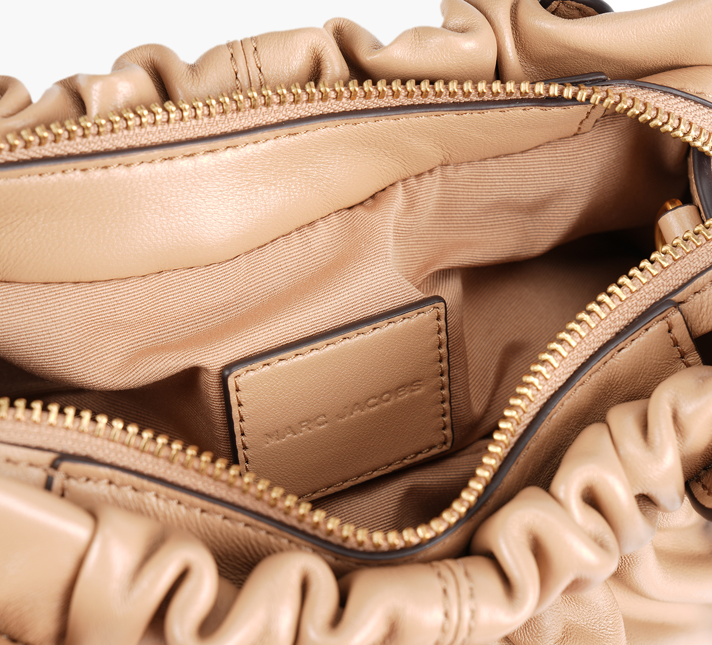 Marc Jacobs' The Small Satchel revisits an archival favourite with a butter‑soft construction, signature scrunch detailing and heritage‑inspired hardware. Light yet structured, its compact silhouette brings relaxed refinement to everyday dressing. A removable, adjustable strap offers an effortless hands‑free option, complemented by an archival key charm and external D‑ring.
