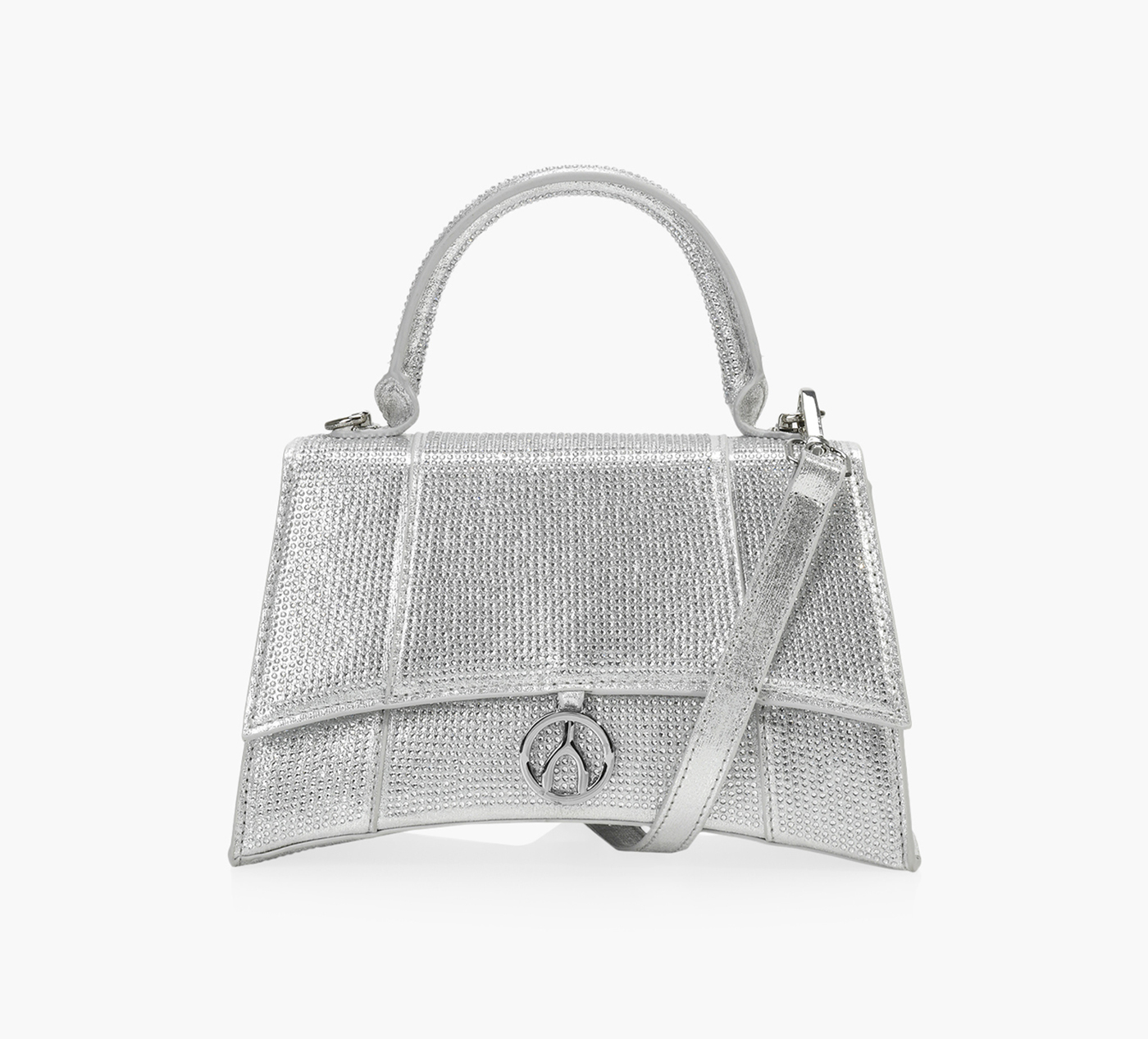 Introducing the WISHBONE Dana satchel bag, a perfect blend of elegance and practicality. This chic accessory is designed to elevate any outfit, whether you're heading to work or out for a casual day. Made from high-quality materials and covered in dazzling rhinestones, the Dana bag features a sleek design with a spacious interior to keep your essentials organized. The sturdy top handles and optional shoulder strap offer versatile carrying options, while the secure clasp closure ensures your belongings stay safe. With its timeless design and sparkling embellishments, the Dana satchel bag is an essential addition to your wardrobe.