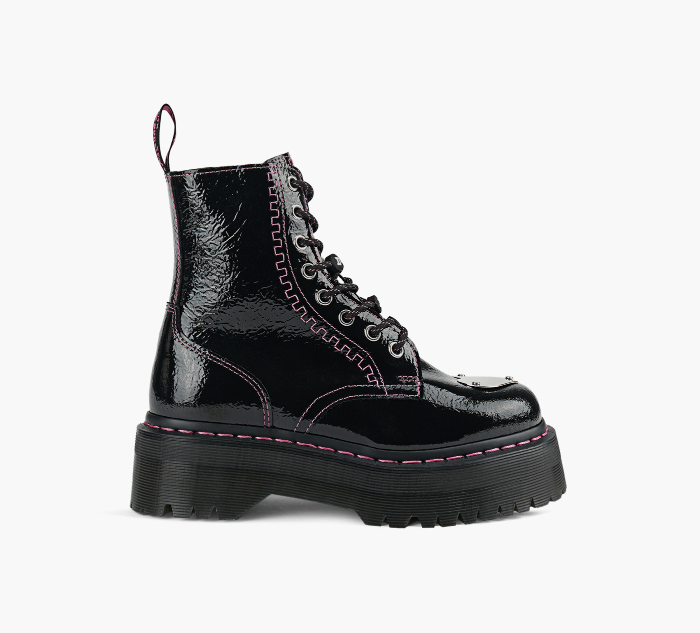- Chunky platform sole adds height and modern flair.