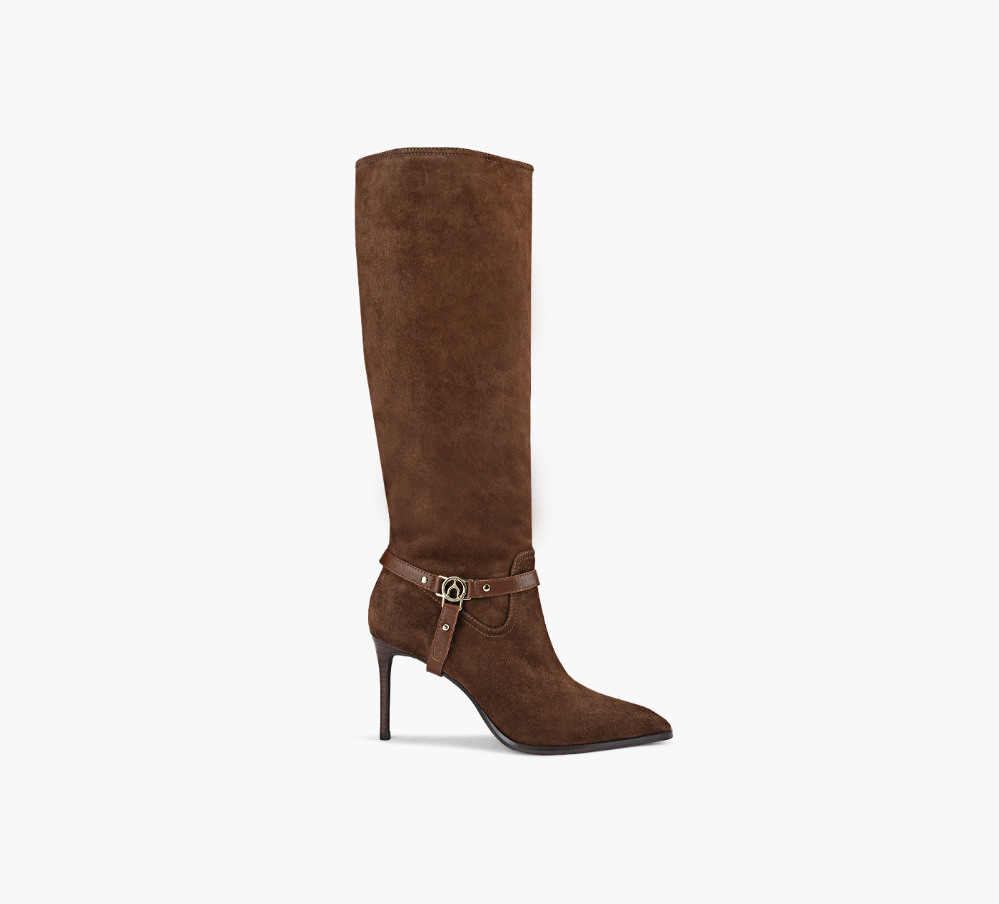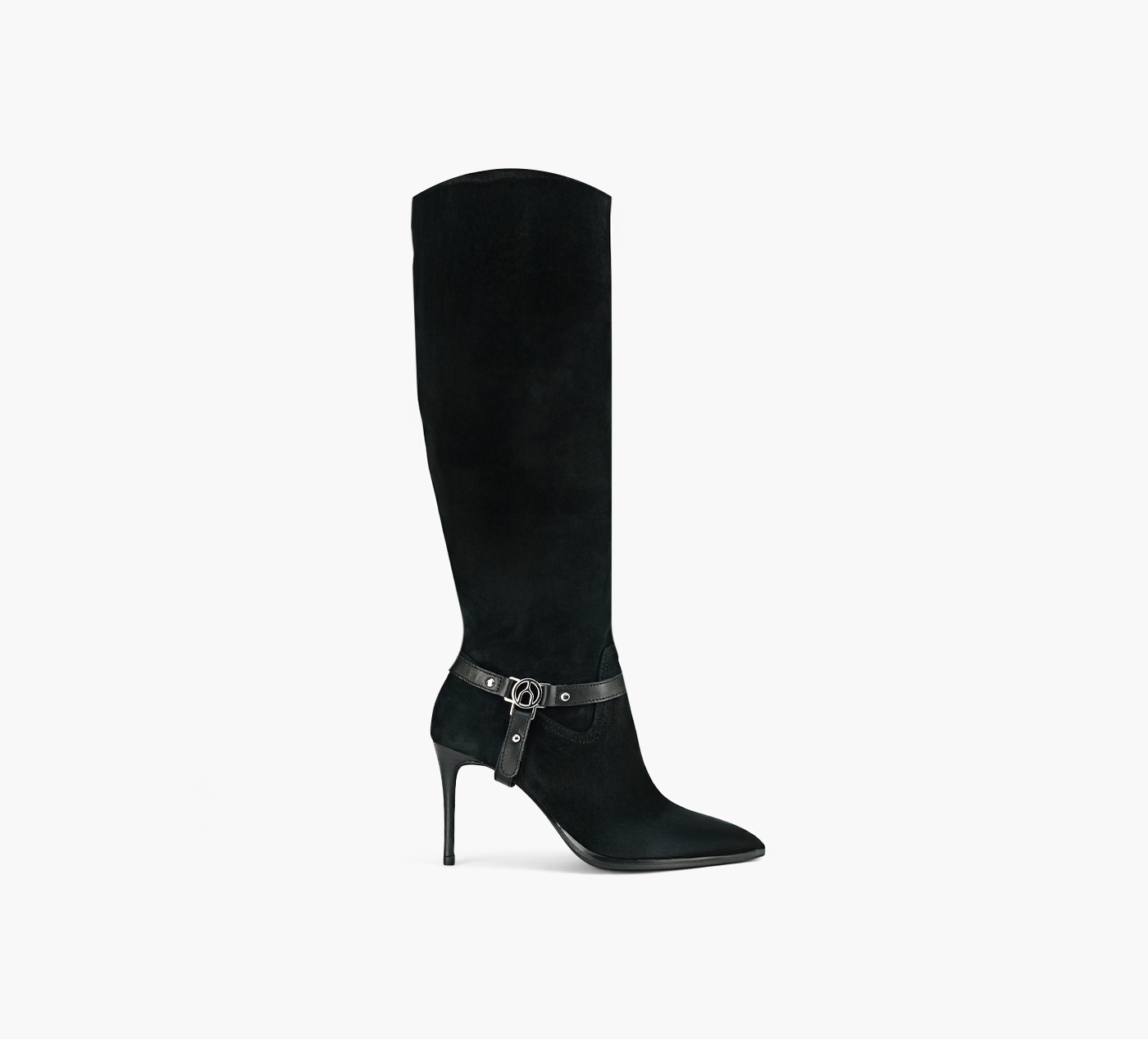 WISHBONE's Noelle boots are straight out of an animal print-lover's dream. Playing on one of the season's hottest trends, this silhouette features a bold cow-inspired motif, from its knee-grazing cuff to its razor-sharp pointed toe. A removable logo plaque-adorned harness wraps around the sole, all before being grounded by a pin-thin heel to give your frame an extra height boost.