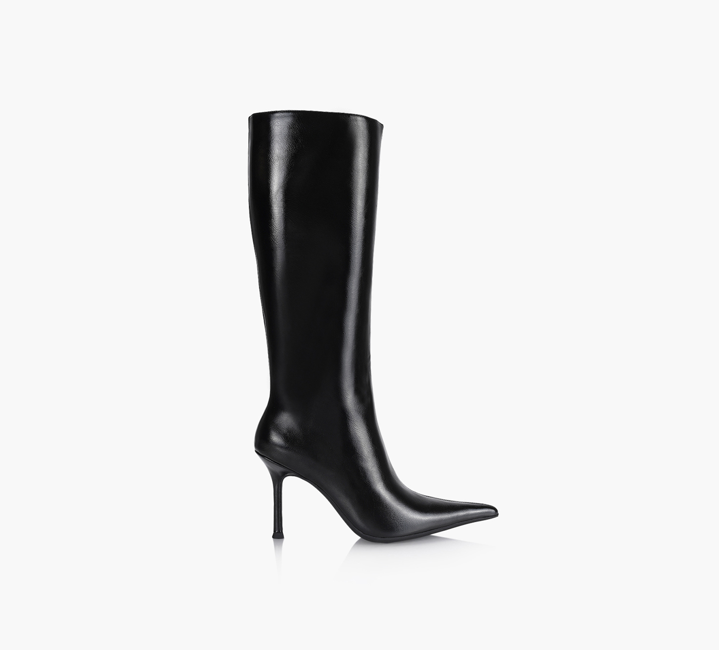 Classic high-top stilettos, featuring an easy-zip up side-long closure and ruffled patch for extra wiggle-room. Refined to a pointed toe, Charlotte sticks to the basics so you can look your most extra.