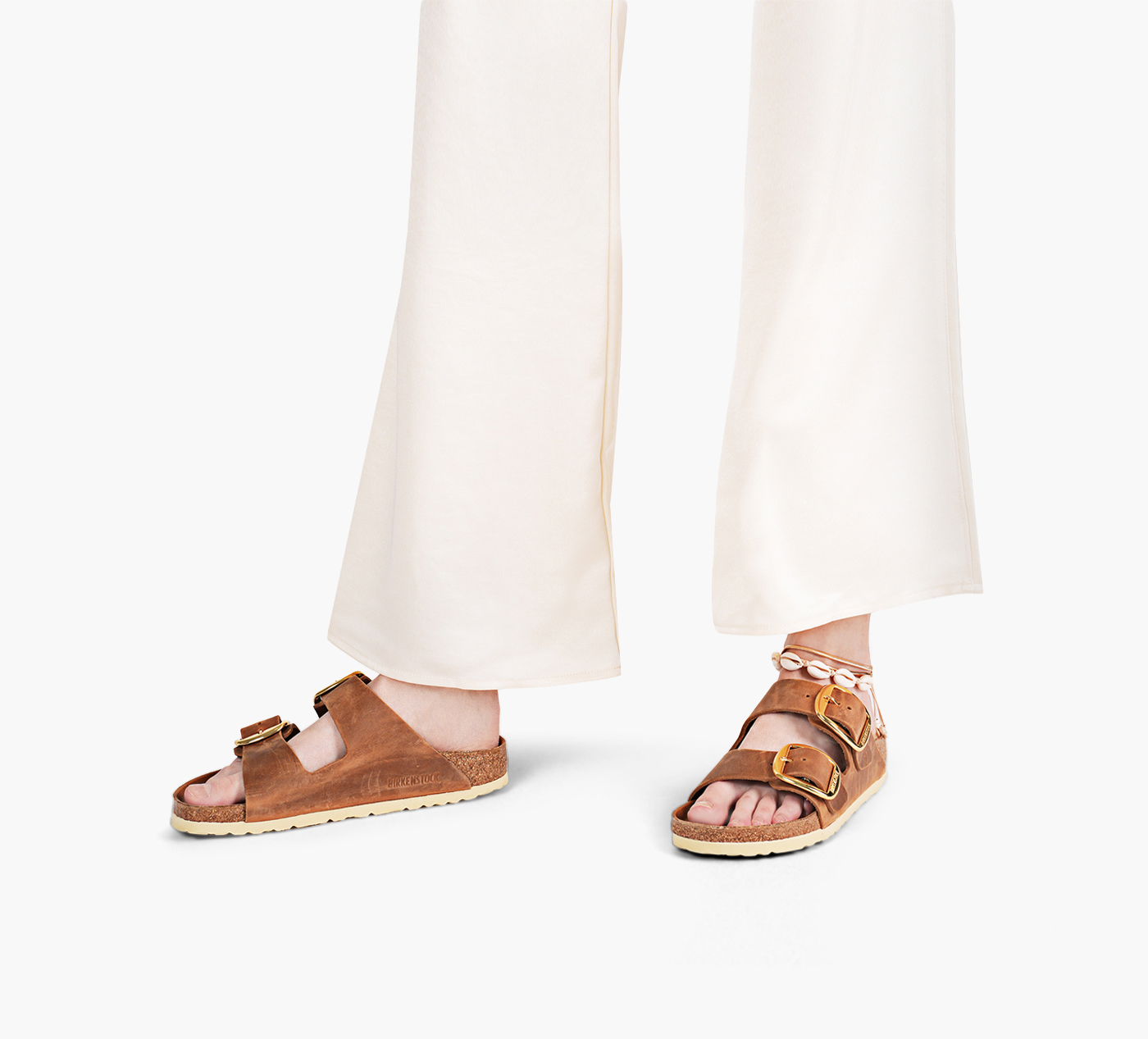 - Iconic two-strap sandal with oversized buckles