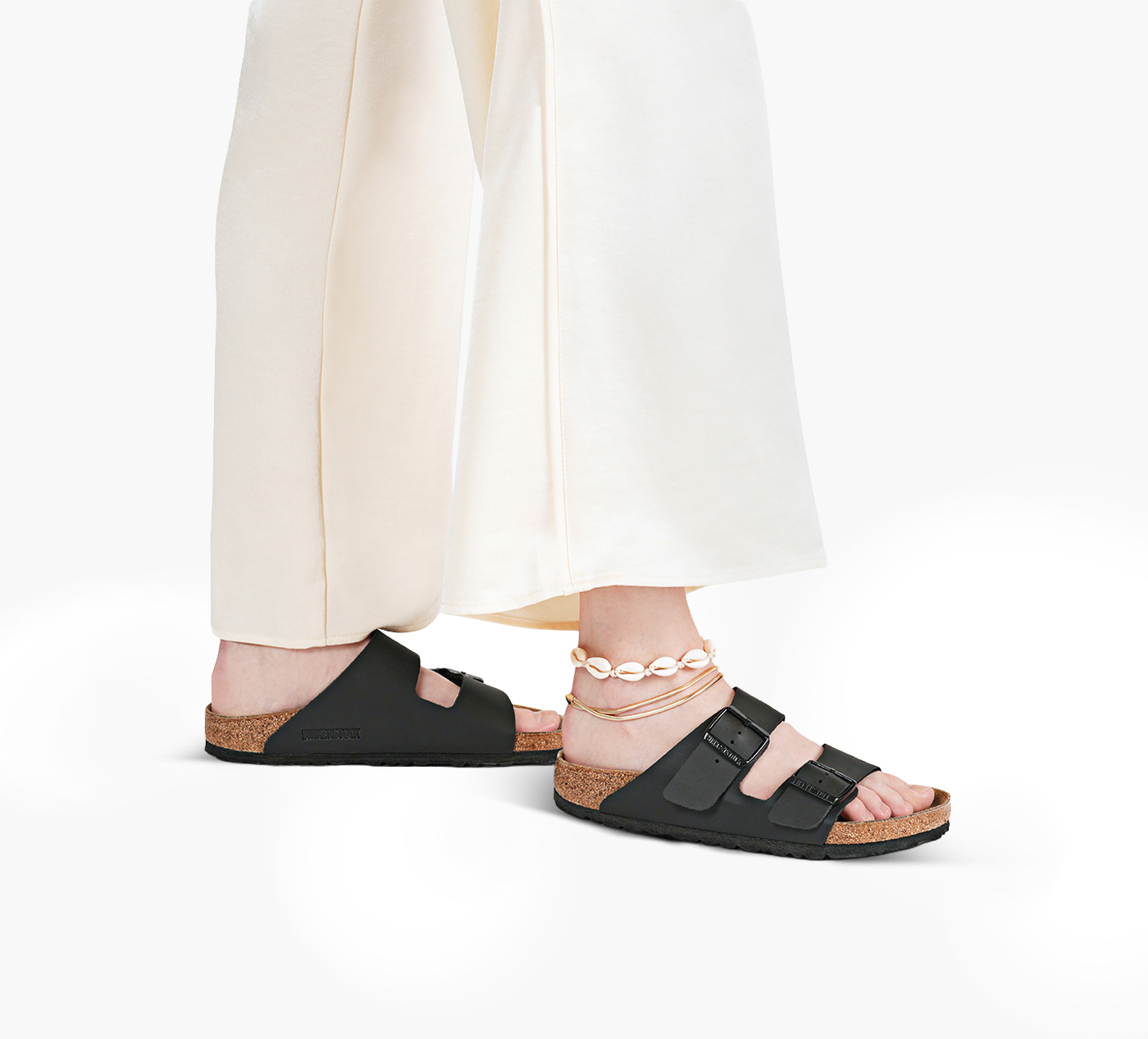 A timeless icon since 1973, the Birkenstock Arizona sandal blends minimalist design with legendary comfort. Its anatomical cork-latex footbed supports natural movement, while adjustable straps crafted from the label's durable Birko-Flor® ensure a custom fit that lasts. Each pair is crafted for everyday ease. A true staple that transcends trends and generations.
