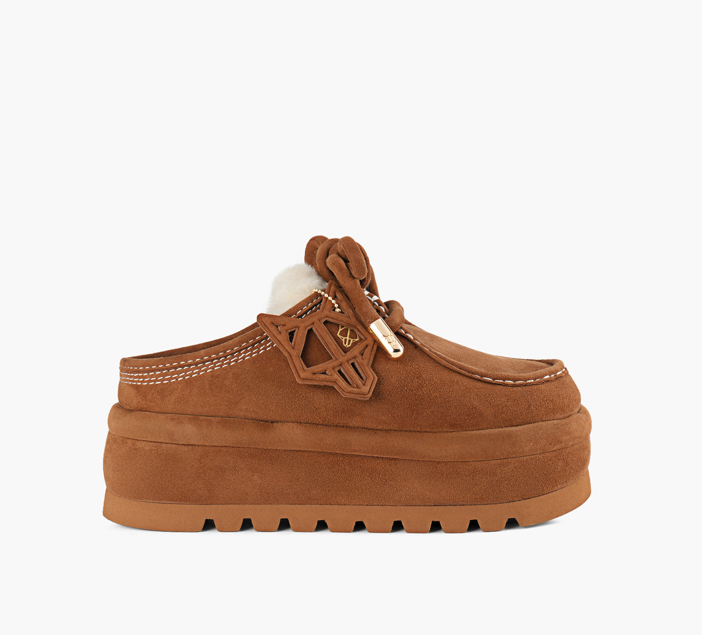 Step into luxury and comfort with the Naked Wolfe Blizzard mule. This backless slip-on features premium suede, a cozy wool lining, and a chunky, lightweight tread for an elevated look. With thick suede laces, branded metal tips, and a signature Wolfe head key chain, each pair is hand-finished for a unique touch. Perfect for making a statement in any casual setting.