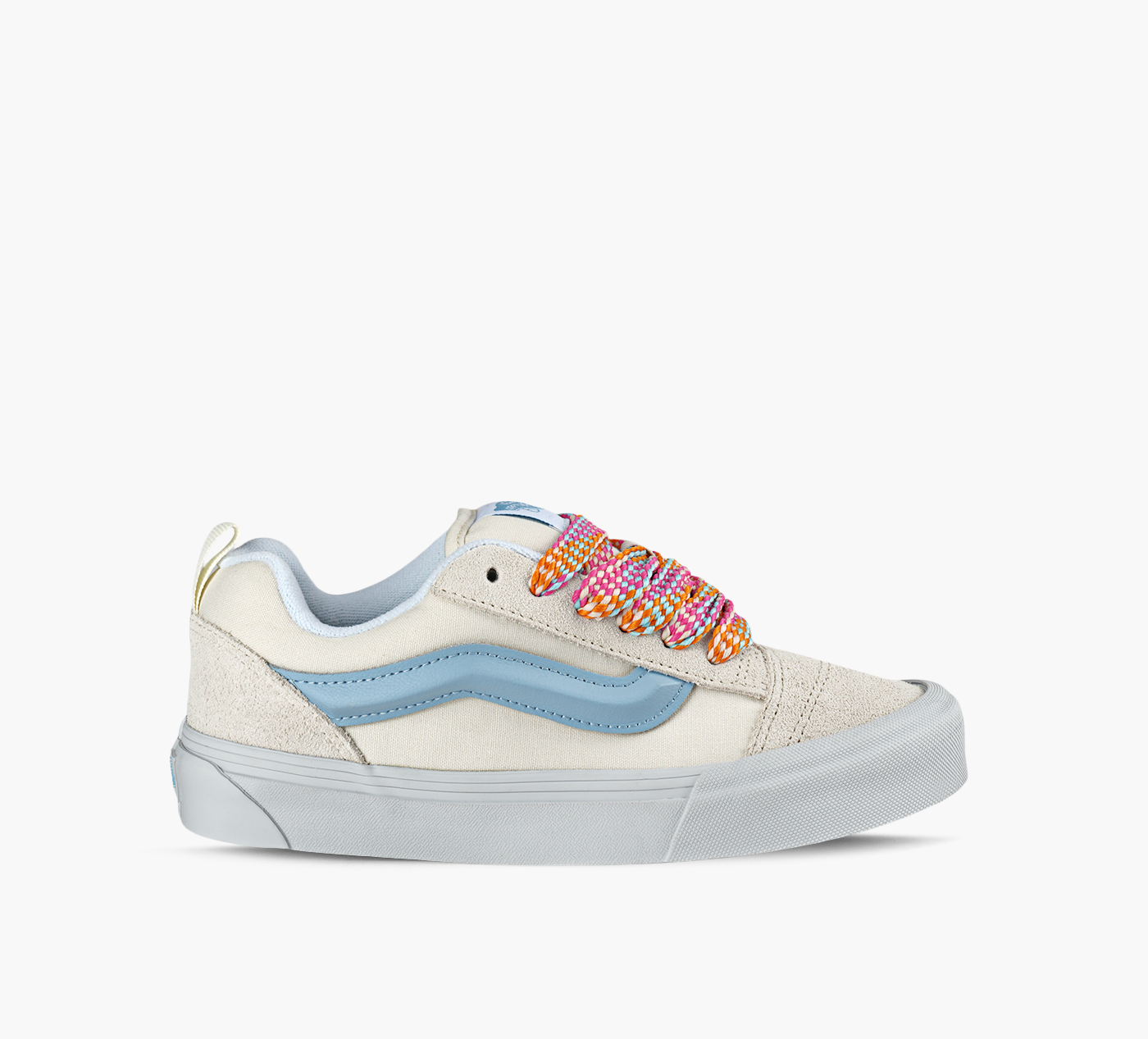 A puffed up take on the classic 90s Vans silhouette that's been stomping the skate pavement since. The staples are all here: contrasting stitches, 3D-molded Sidestripe, and tied off with oversized, chunky laces. In with the Knu.