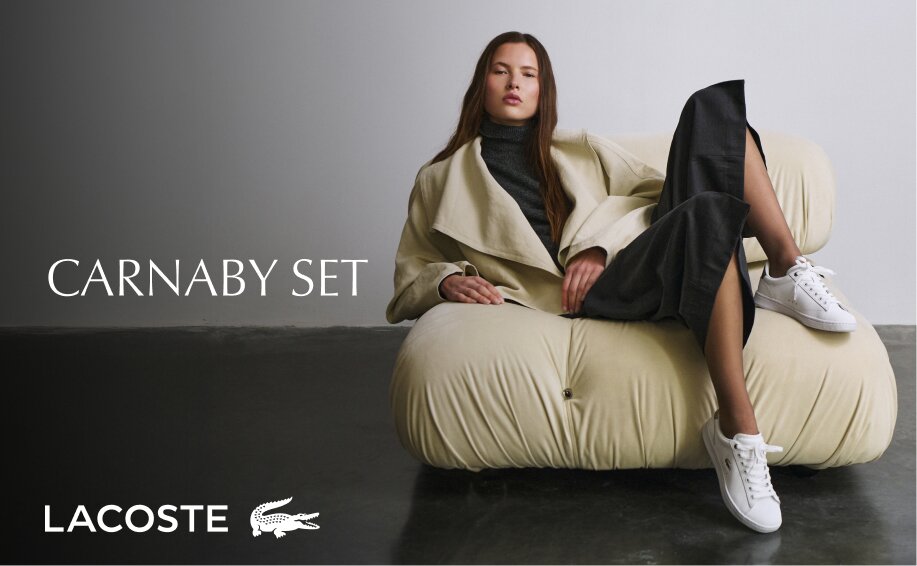 Lacoste représente l’héritage d’une marque qui incarne le luxe sportif. La star du tennis français René "Le Crocodile" Lacoste a créé cette maison de création éponyme en 1933 avec des polos qui ont instantanément fait évoluer la tradition du vêtement de sport. Dans les années 1990, les chaussures Lacoste ont vu le jour, inaugurant la silhouette décontractée de la marque, qui a depuis évolué avec plusieurs adaptations et dont la réputation ne s'est jamais démentie. Les couleurs et les textiles riches de la marque, ainsi que son logo crocodile brodé, constituent le symbole de sa sophistication et de son design contemporain. L'expansion de Lacoste se manifeste par la désignation du célèbre joueur de tennis Novak Djokovic comme ambassadeur de marque, ainsi que par ses collaborations avec Supreme, Zaha Hadid et Netflix.