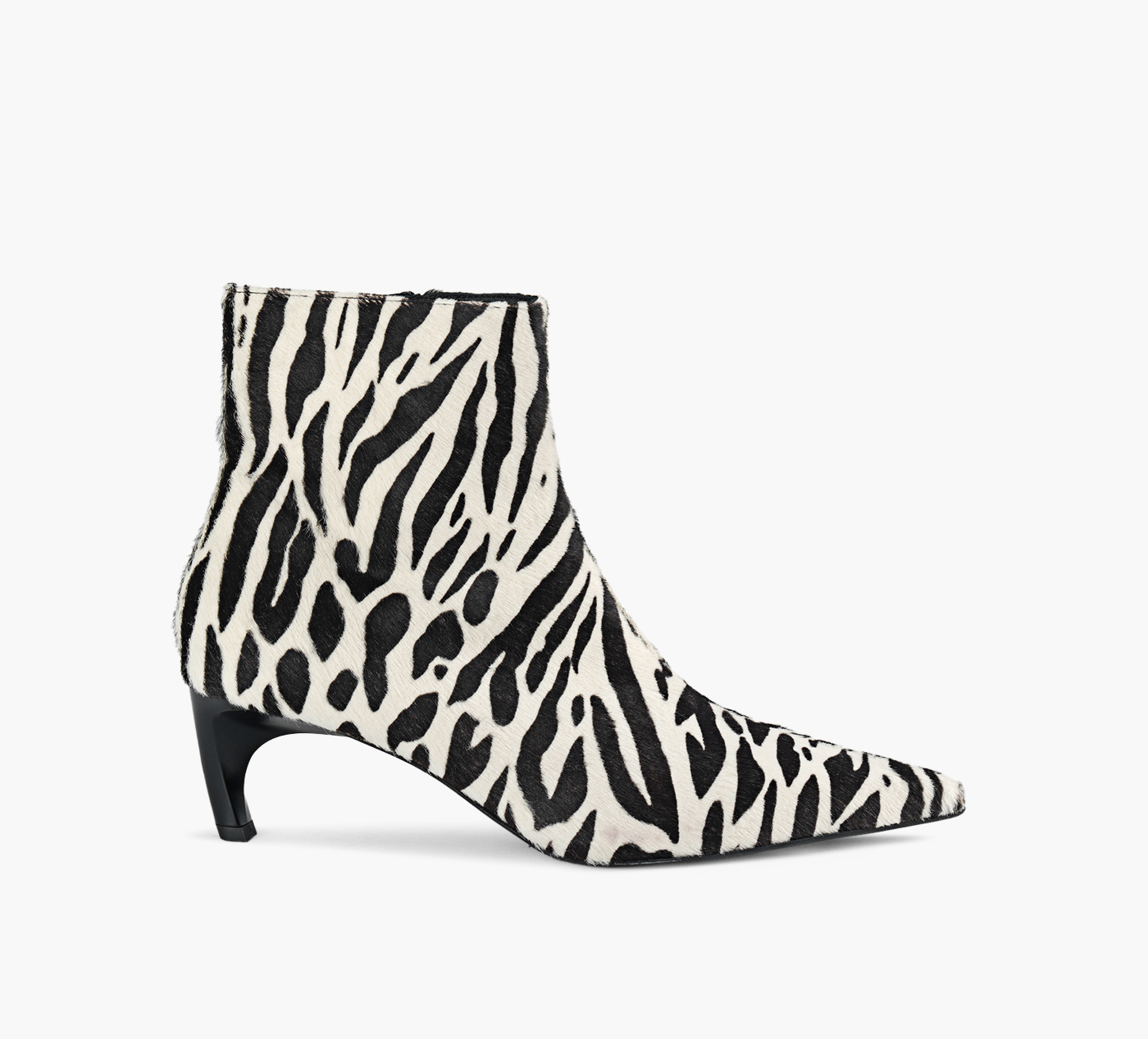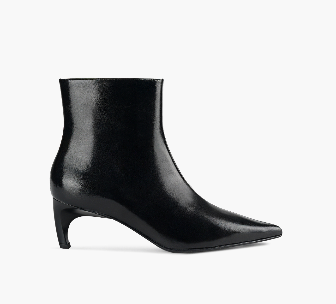 Découpée dans une silhouette qui effleure la cheville, cette création adopte une approche affûtée avec un bout pointu allongé qui attire tous les regards dès votre entrée. Offrant de la hauteur à votre tenue sans compromettre le confort, elle est montée sur un petit talon « kitten » et se ferme proprement à l’aide d’un zip discret.