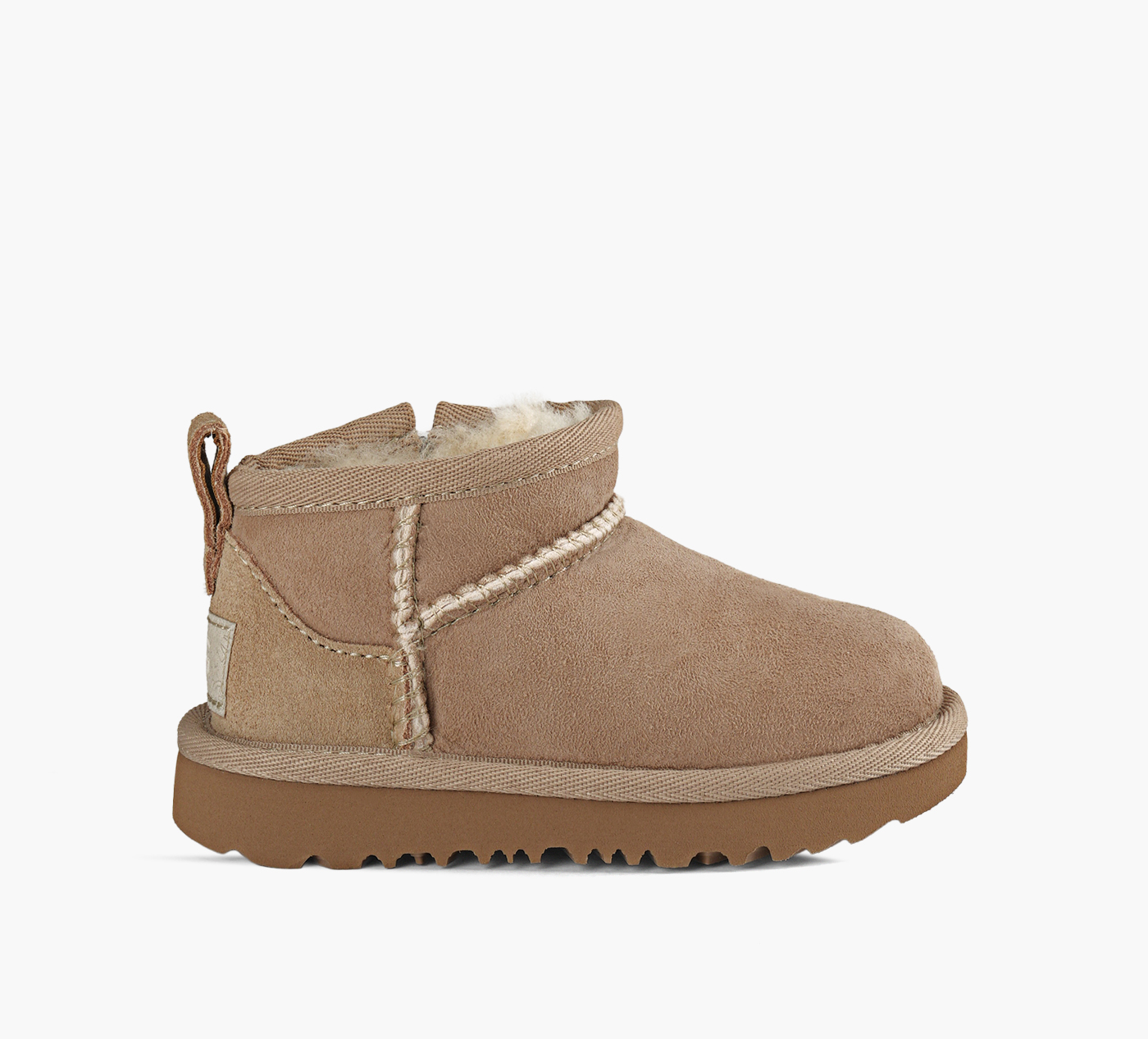 La Classic Ultra Mini revisite la silhouette iconique à travers une tige plus basse pour un modèle polyvalent facile à enfiler et retirer. Pré-traitée pour afficher une allure impeccable au fil du temps, elle incorpore tous vos éléments préférés présents sur la chaussure originale : la peau de mouton iconique, la doublure ultradouce UGGplush™ ainsi qu’une semelle souple et légère.