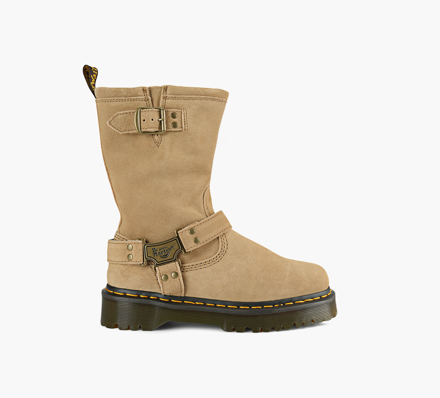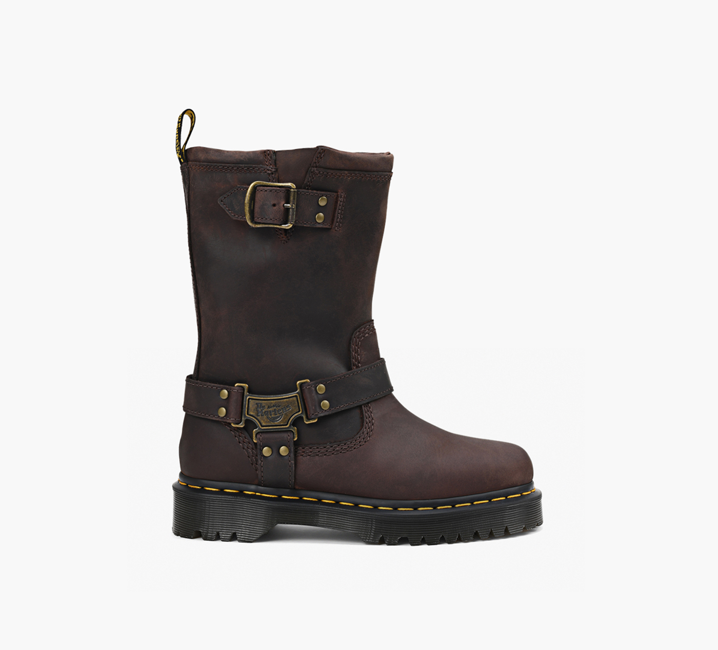 Faites gronder votre moteur. Nos nouvelles bottes de style motard Anistone sont faites pour être remarquées. Elles sont réalisées en cuir Burnished Waxy Pull-Up brut et dotées de finitions d’inspiration industrielle, dont des plaques en métal et une boucle ajustable. Retrouvez aussi nos signatures, la semelle Bex épaisse soulignée de rainures et de surpiqûres jaunes. Le talon se pare de plus de notre boucle d’enfilage jaune et noir classique.