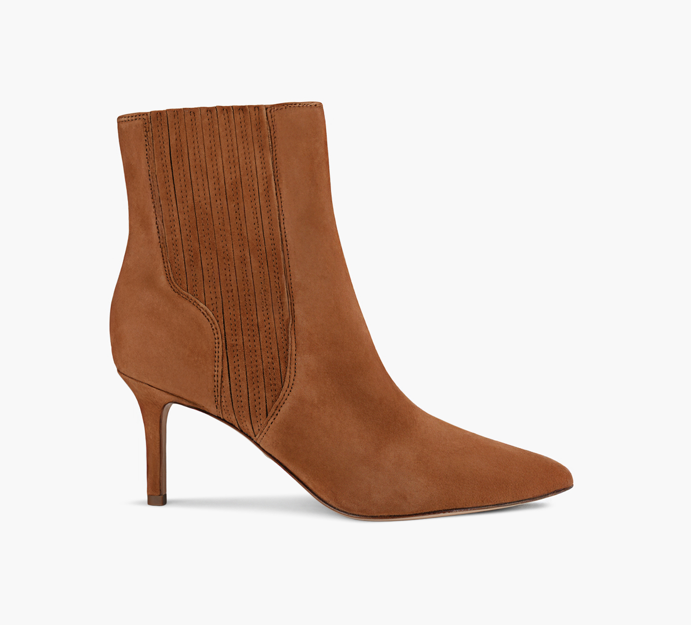 La bottine Lisa 70 de Veronica Beard incarne l’élégance discrète. Conçue en cuir ou en suède, elle présente un bout pointu raffiné et un talon mi-haut de 70 mm. Les goussets latéraux dissimulés assurent un enfilage facile, tandis que sa silhouette épurée s’adapte à toutes les tenues. Un essentiel polyvalent pour un style affirmé au quotidien.