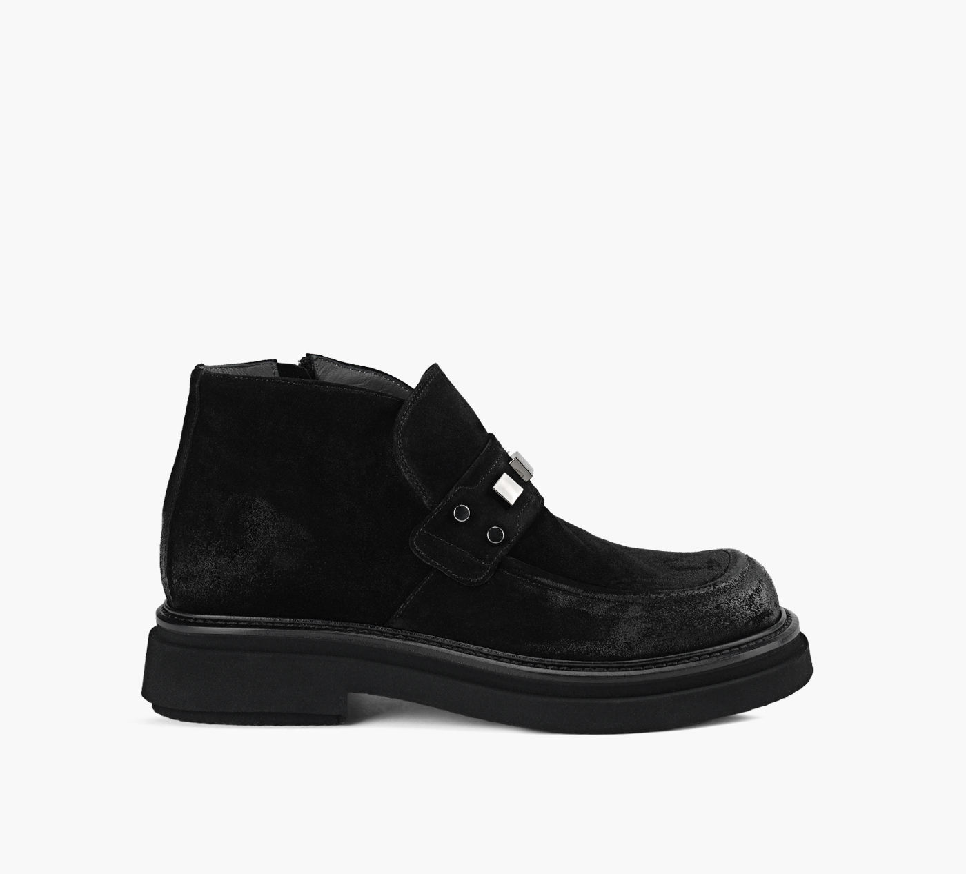 Même lorsqu’il s’agit de modèles classiques, Mimosa ne se contente jamais de suivre les conventions. Prenez les flâneurs Lazuli, par exemple. Dotés d’une silhouette exagérée, ils adoptent un profil inspiré de la bottine, avec une fermeture zippée pratique. Exit la traditionnelle bride penny : cette version opte pour une approche plus audacieuse, avec un ornement métallique brillant sur le dessus du pied, le tout posé sur une semelle épaisse pour une touche résolument affirmée.