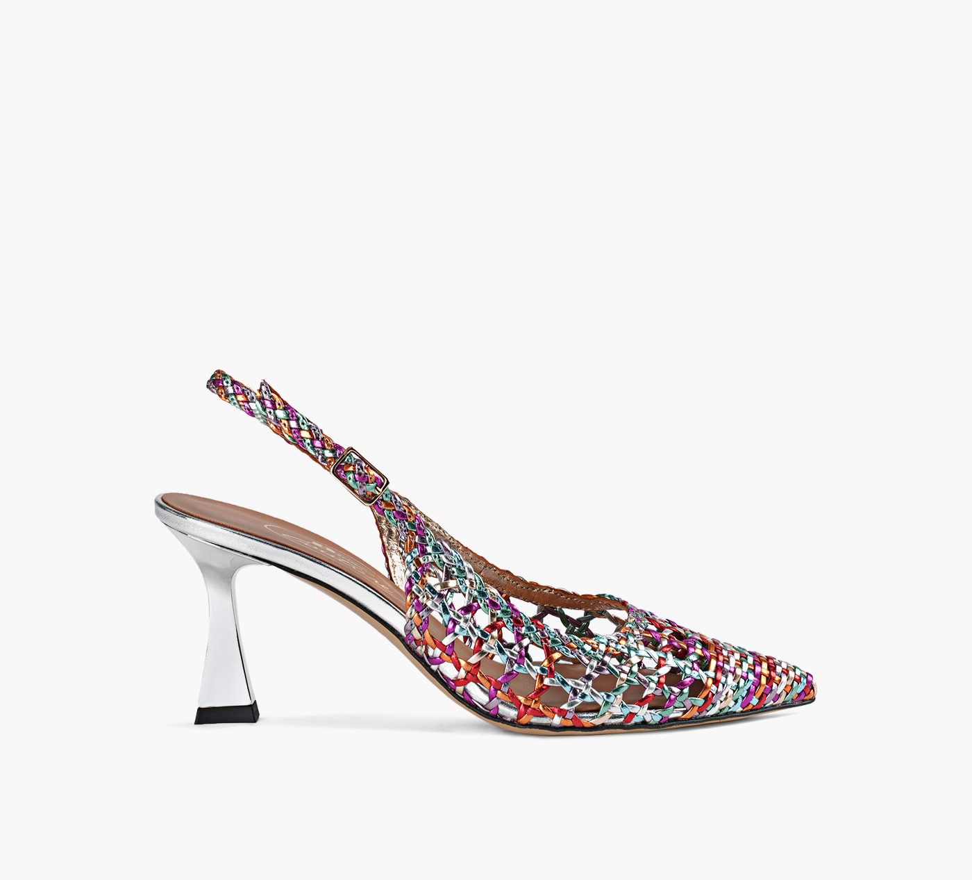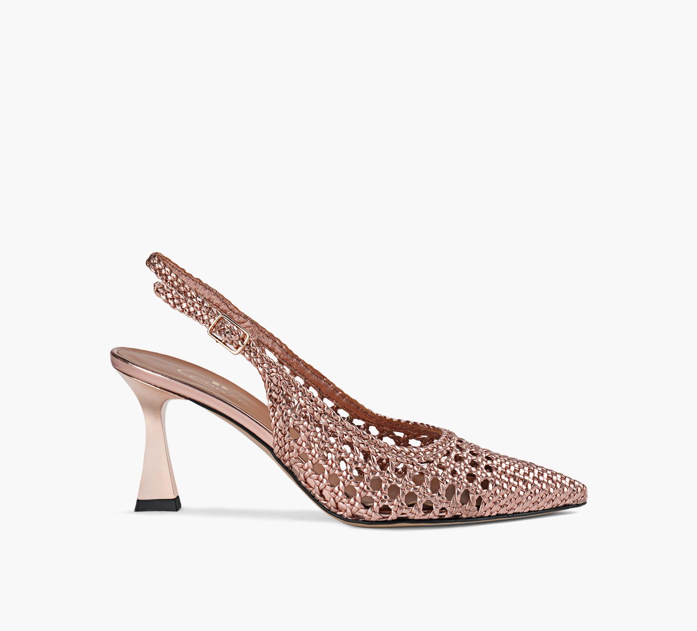 Browns Couture peut avoir un penchant pour les classiques sartoriaux, mais ne vous inquiétez pas – la marque garde toujours une affection pour l'originalité. Les Mint Sling en sont la preuve. Taillées dans une silhouette classique de slingback, la tige en cuir doux de ce modèle est entièrement tressée, laissant entrevoir la peau. Bien sûr, le confort est primordial, elles sont donc dotées d'un talon bas pour ajouter quelques centimètres à votre silhouette sans compromettre un ajustement sécurisé.