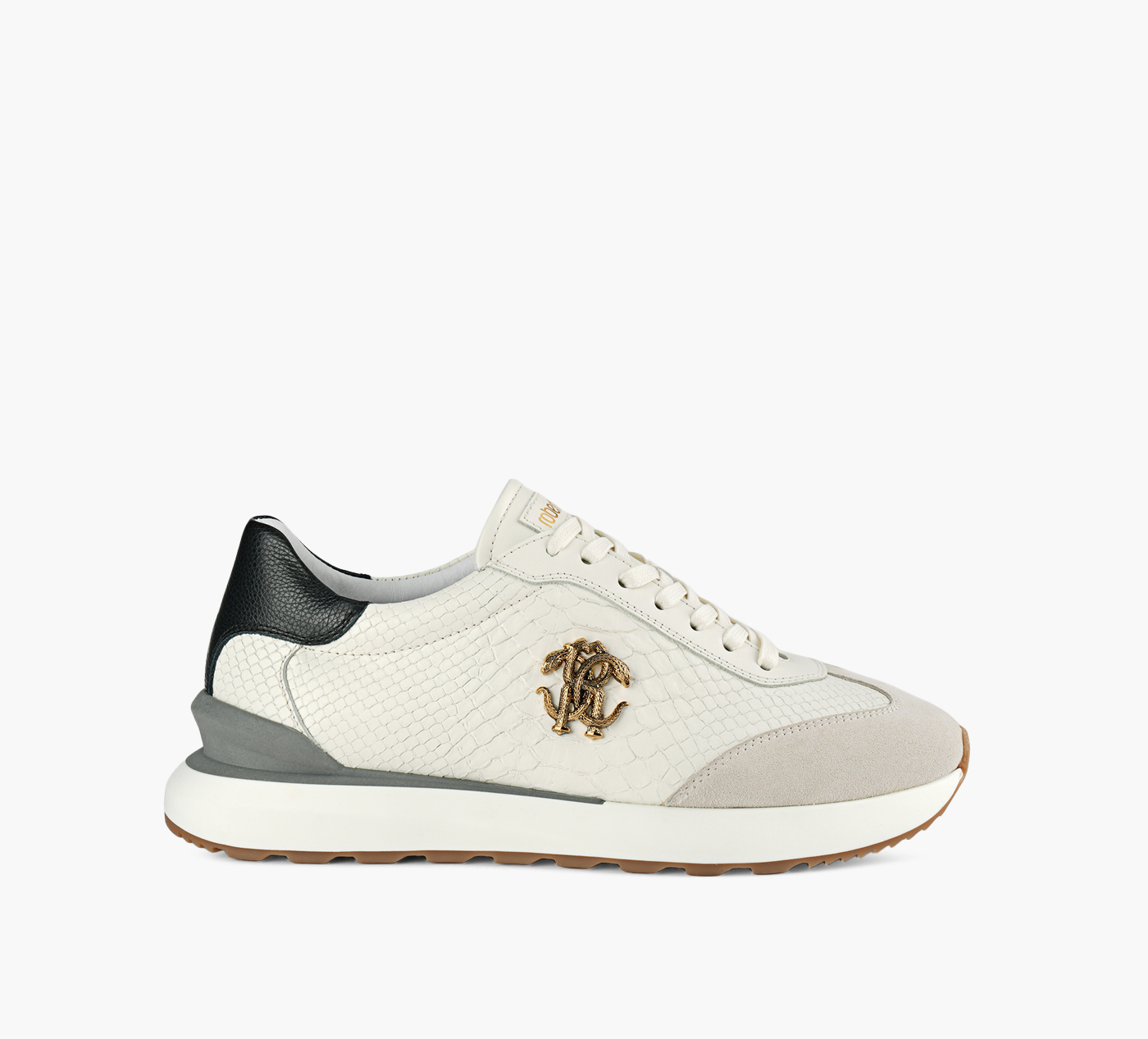 Ces baskets à profil bas de Roberto Cavalli proposent une silhouette facile à styliser et immédiatement identifiable grâce aux touches tendance qui ont marqué la fin des années 90. Elles sont dotées de panneaux texturés et arborent fièrement le logo RC pour un fini authentique.