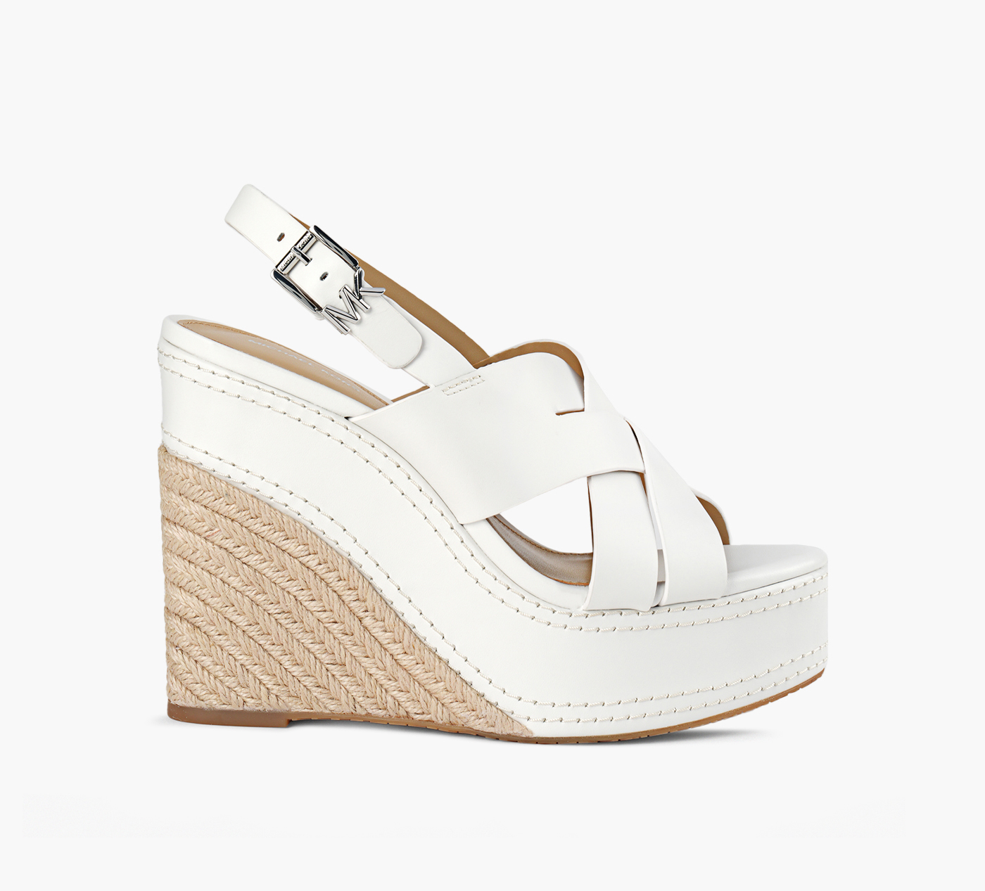 Avec le retour des climats plus chauds vient l'envie de magasiner pour de nouvelles chaussures, et quel meilleur style choisir que les sandales compensées Nora de Michael Kors? Prouvant que confort et style peuvent aller de pair, le profil à brides de cette paire repose sur un talon compensé haut qui ajoute des centimètres à votre silhouette tout en vous gardant fermement ancrée au sol. Pour un soutien supplémentaire, elles sont équipées d'une bride à boucle réglable au talon, surmontée d'une plaque logo brillante.