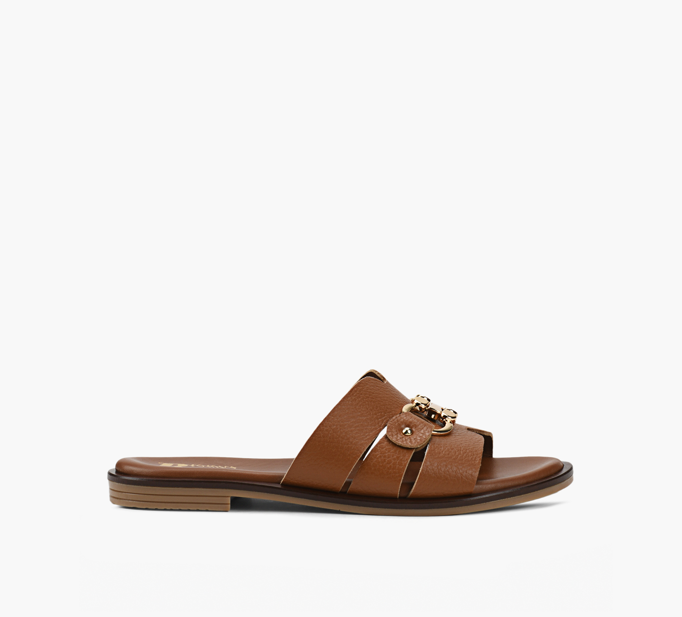 Des sandales à enfiler de luxe signées Browns. Le modèle Jetty arbore des sangles de forme unique, ornées d’une pièce décorative dorée pour plus d’élégance, le tout monté sur une assise plantaire douillette.